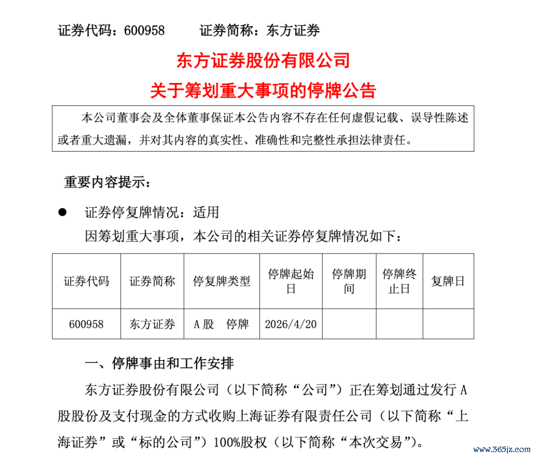 4月19日下午,东方证券发布关于筹划重大事项的停牌公告,称公司正在筹划通过发行A股股份及支付现金方式收购上海证券100%股权。公司A股股票将于4月20日开市起停牌,预计停牌时间不超过10个交易日。最新收盘价显示,东方证券报9.34元/股,今年以来下跌超14%。
