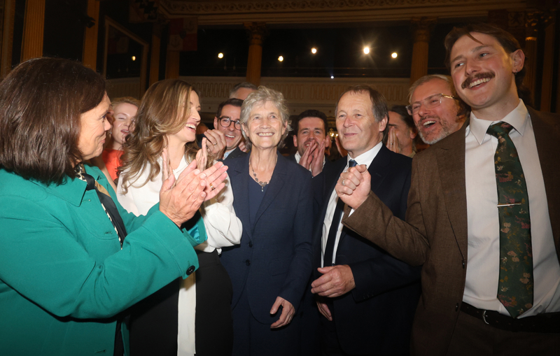 10月25日,爱尔兰首都都柏林,凯瑟琳·康诺利(前左三)获胜后接受祝贺。\n 新华社 埃蒙·法雷尔 摄