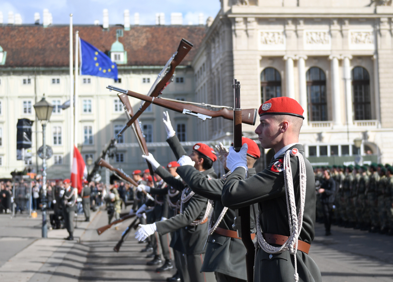 10月26日,奥地利维也纳,入伍新兵参加国庆日活动。\n 新华社 贺灿铃 摄