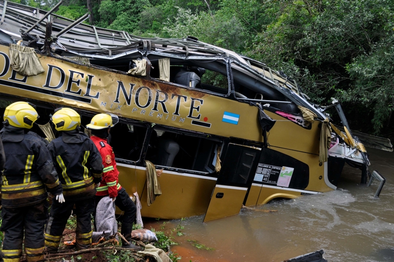 10月26日,阿根廷北部米西奥内斯省,救援人员在事故现场工作。\n